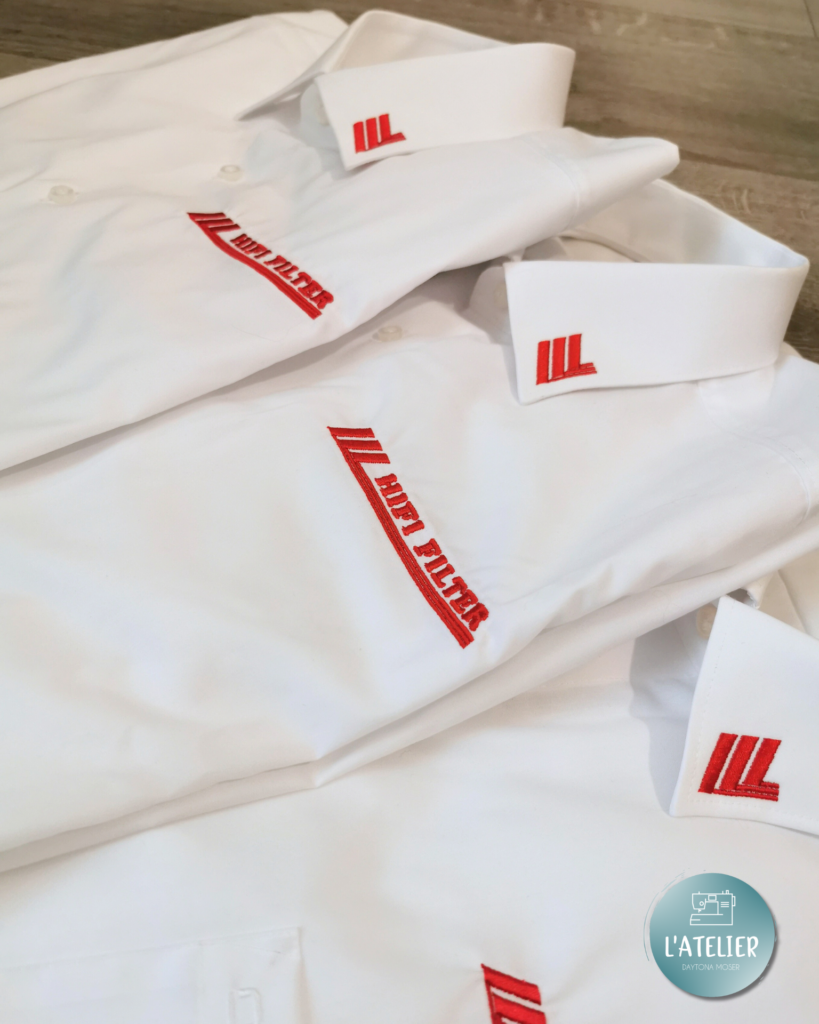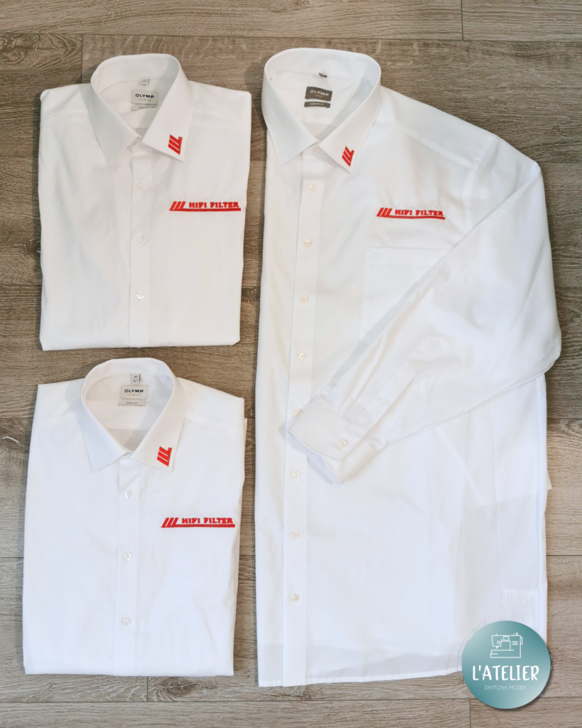 Réalisation de broderies sur vêtement professionnel pour Hifi Filter.
